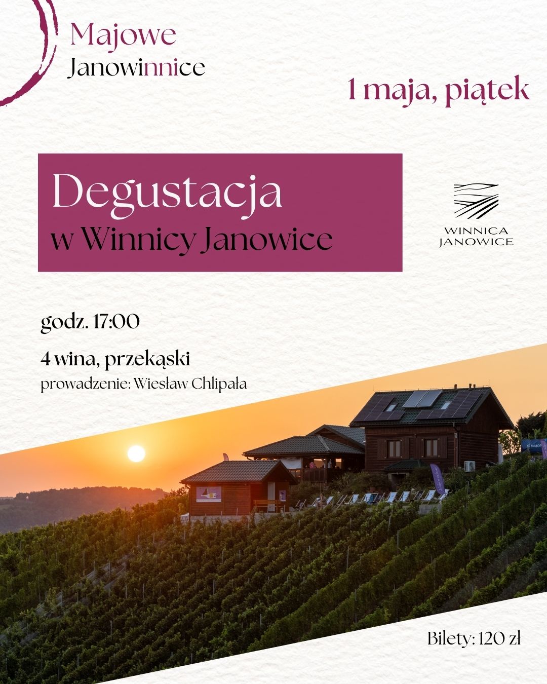 1 maja 2026, piątek godz. 17:00 - Degustacja win z Winnicy Janowice